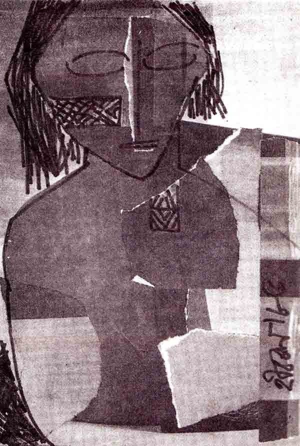 The paintings of Poet Hiru da bring to our mind the majestic display of infinite greens. And between them are the hints of faint blue and red colour. Amid the flanking greens, the splashes of red and blue colour here and there create an illusion. Eloquent! We can define poet Hiru da's paintings into two categories - polished and unpolished. The paintings which were Hiru da's spontaneous creations can be considered as unpolished. These include the art works of cover pages for books done by him. His unpolished work not only portrays a disorderliness of medium, but also dissimilarity of subject matter. The pictures drawn by Hiru da using sketch pen or pencil on the easily available chits of colourful papers which he tore and designed like collage can undoubtedly be considered among his unpolished works. The credibility of such paintings is dubious. Poet Hiru Da too had realized that. And which is why at different times, he remarked- I do not paint. Those who were associated with him could hear this from time to time.